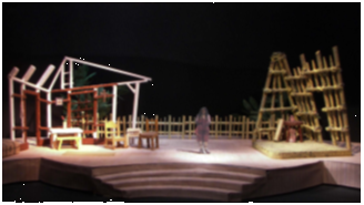 “I have always found David to be a very good artistic collaborator. He’s easy to work with during a show’s concept stage and provides beautiful models and/or renderings. The productions I’ve directed have certainly benefited from his great visual style.” “Our stage has no wing or fly space, so there’s no place to store scenery offstage. David’s design solutions have often been to “store” scenery onstage by making the set pieces multi-functional or by having the individual flats expand or contract to create new locations. For instance, his concept for Fiddler on the Roof placed the entire village of Anatevka onstage throughout the show; however, one of the exterior flats of Tevye’s house folded open to create the interior set, the inn was created by opening a flap to reveal the bar, and Motel’s shop opened up in the same way, all in the manner of a pop-up picture book. When he directed Dancing at Lughnasa he built a house interior on the floor of our auditorium, with the rafters angling up towards the stage. When we produced Guys and Dolls, the primary set design appeared to be the New York street setting, but some of the flats representing the buildings were double-hinged and opened up to create the interior of the mission or the sewer system. Effective lighting designs further altered the stage dimensions in intriguing ways. In fact, I recall that our reviewer for Guys and Dolls from the American College Theatre Festival—who was also a set designer—was so fascinating by this concept that he spent a long time after the show carefully checking out how the scene changes were accomplished.” “David has always provided me with scale models and drawings of his designs, and when I’ve requested changes, he’s always supplied me with a revised model or plan. He’s extremely good at getting the most “bang” out of our budget buck. He’s very resourceful at recycling the set components into the next show and saving money through all sorts of practical ways.” -Professor Robert Stoddard |